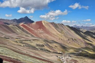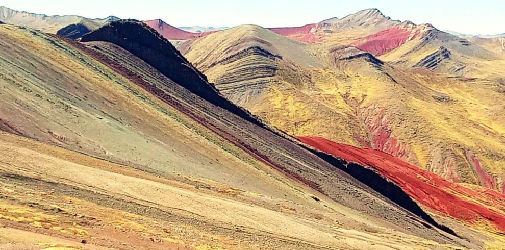 Boa pergunta! As Montanhas Coloridas (também chamadas de Montanha Vinicunca ou Montanha das Sete Cores) no Peru —e outras formações...